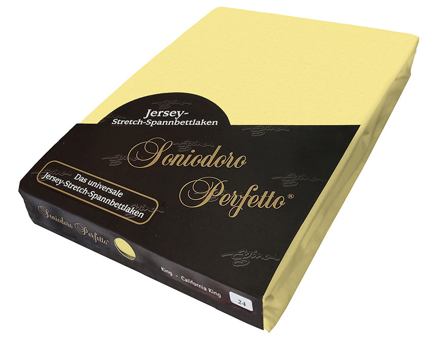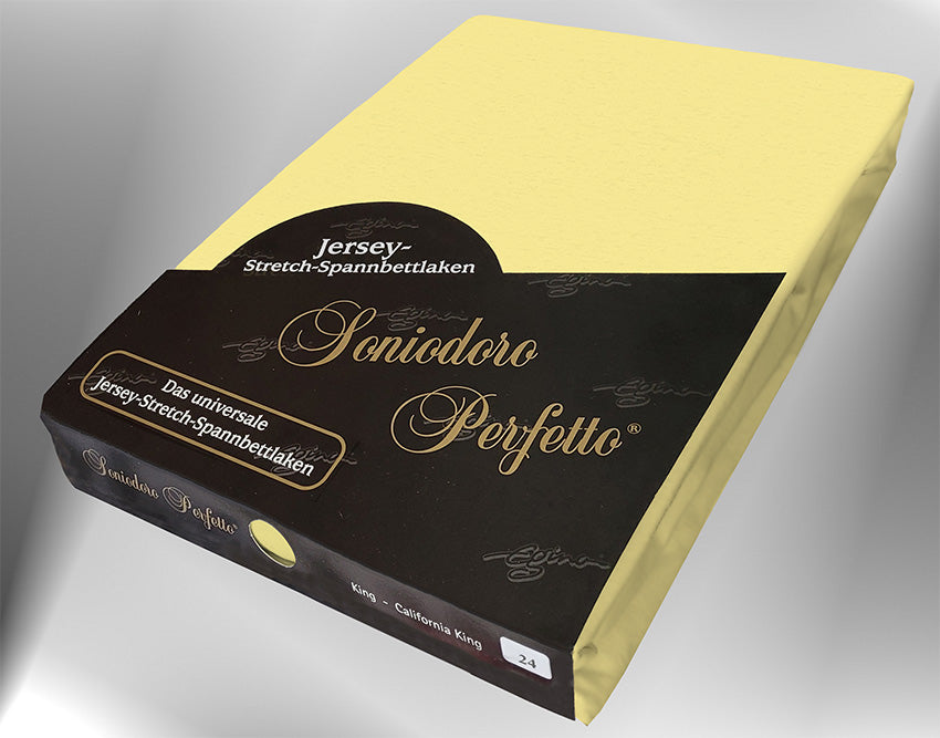 Our Jersey Knit Stretch sheets in color 24-Sun are sure to cheer you up. They are not a bright, shrill yellow, but rather a subdued, mild and warmer yellow with a slightly reddish tint. They represent the sun, the light, brightness, friendliness and a certain "joie de vivre". Light yellow can also have a very positive influence on your mood and can make you feel cheerful, free and relaxed. Color 24-Sun is a more natural shade of yellow and therefore can be combined with other natural-looking colors.